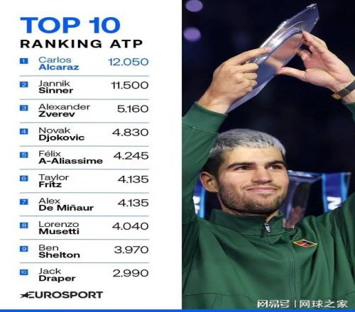 前三的人员没有变化,只是阿卡从第三一跃至首位,而辛纳和兹维列夫则分别下滑一位。他们三人已经连续几年携手位列前三,也是一道独特的风景线。