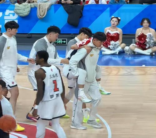 比赛第二节还剩4分07秒,场上发生意外,萨林杰前场上篮打中,北京快发底线球反击,周琦在反击过程中接应杰曼长传准备下快攻,但过程中不慎被萨姆纳绊倒,周琦失去重心摔倒,不幸撞伤了徐杰。