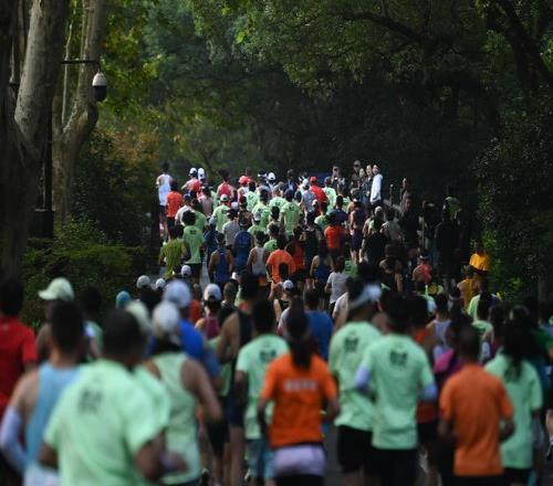 杭州马拉松赛中的跑者。新华社发