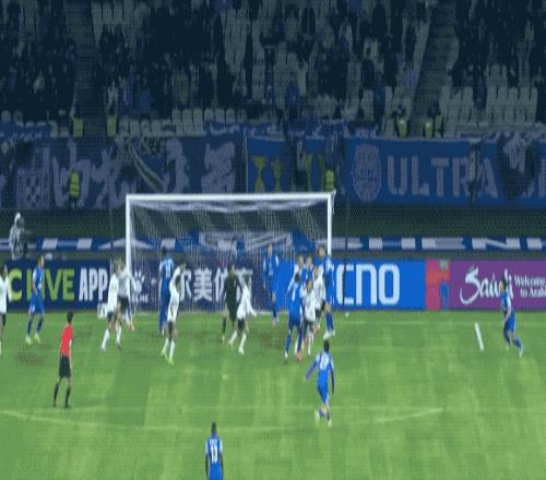 第14分钟,吴曦送出精准长传,米内罗的跑位带走防守球员,阿苏埃的远射击中横梁。